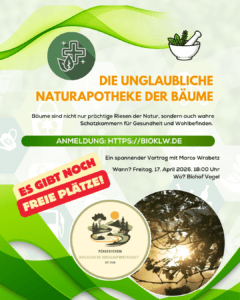Freitag, 17. April 2026 – 18:00 Uhr – Biohof Vogel… 🌳 Nur noch 2 Tage: Die unglaubliche Naturapotheke der Bäume – Jetzt anmelden! 🌳 weiterlesen - Frohe Ostern 2026 – Gemeinsam für eine lebendige Zukunft